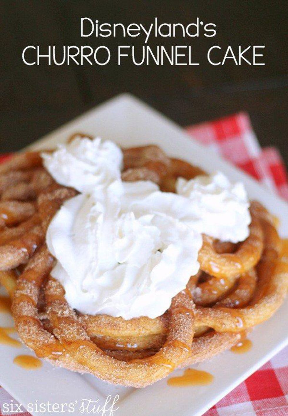 From the Six Sisters: "One of my favorite desserts in Disneyland is the Churro Funnel Cake from the Hungry Bear Restaurant. I've recreated it at home the best I can to tide me over until the next time I get to the park."