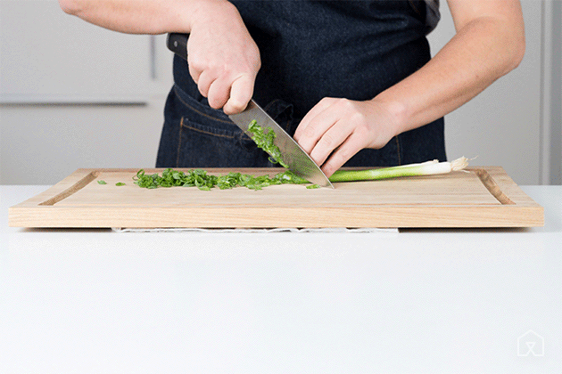 When using a cutting board, be sure to give yourself plenty of room for both the uncut veggies/meat and the cut stuff.Using too small of a board means you're constantly tripping over yourself while trying to cut quickly. It's a quick fix that won't slow you down anymore.