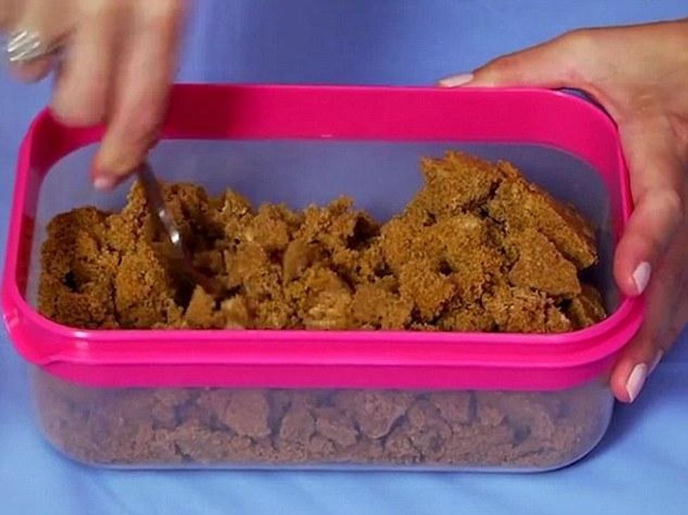 Have you ever felt like you needed to borrow a jack-hammer just to break through your brown sugar?If so, try putting a couple marshmallows in your brown sugar container—it'll keep it from clumping and make scooping it out way easier next time.