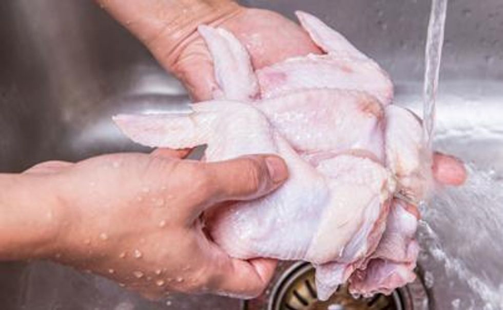 Research shows that rinsing your meat before you cook with it is completely unnecessary and only leads to spreading more germs in your sink.Next time, skip the rinse and just make sure you heat the meat to the proper temperature to reduce risk of illness.