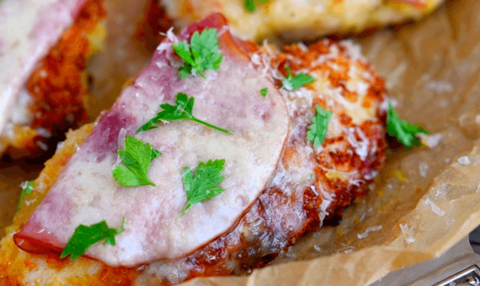 To start off our list, I've included one of my all-time favorite dinner classics—Chicken Cordon Bleu. But who has time to pound the chicken, stuff it with ham and cheese, dip it in egg whites, roll it in crumbs....there's just so much to it.