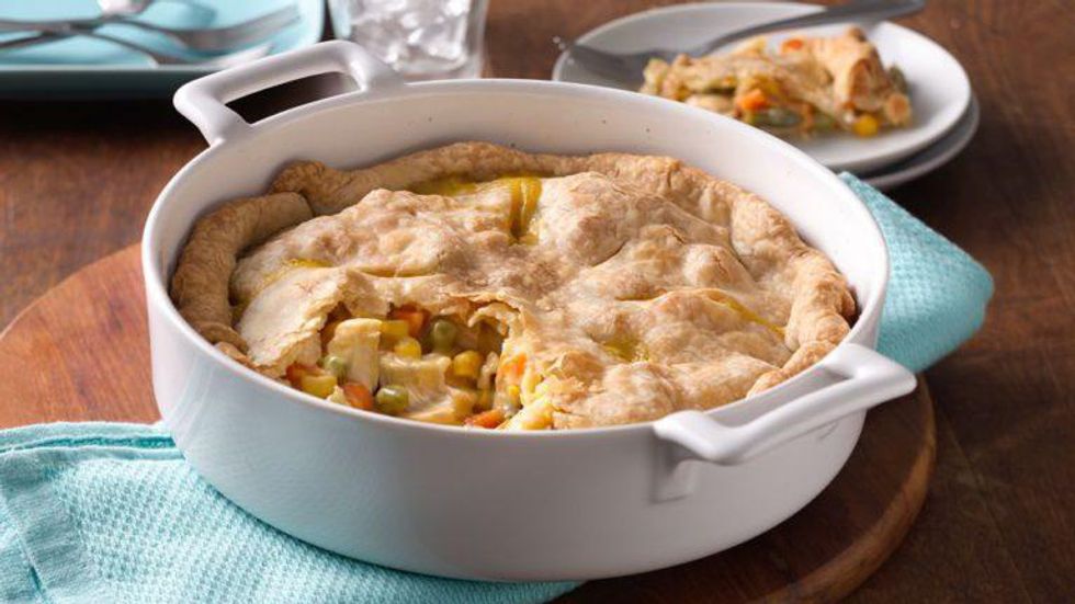 What could be more heartwarming than a delicious chicken pot pie, hot out of the oven? But most nights, there's just not time to make the dough, cut up the veggies, boil the chicken, and bake the pie itself.