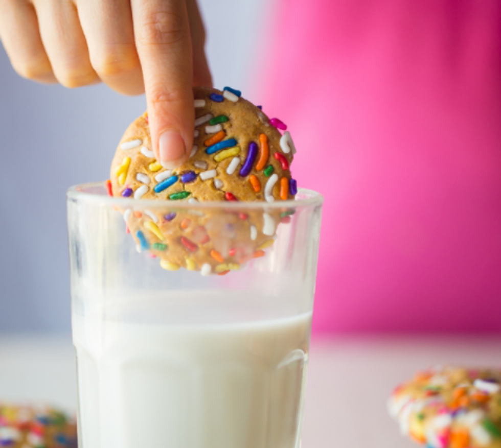 "These quick and easy protein cookies taste just like funfetti cake! You'll never know they're a healthy, gluten free treat for under 90 calories!"