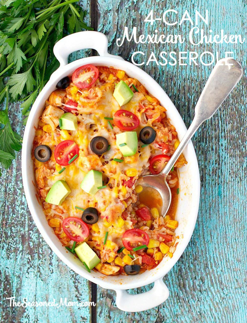 This 4 Can Mexican Chicken Casserole comes together in about 5 minutes and can be prepared ahead of time for a family-friendly easy dinner on busy nights! Click Here For Recipe.