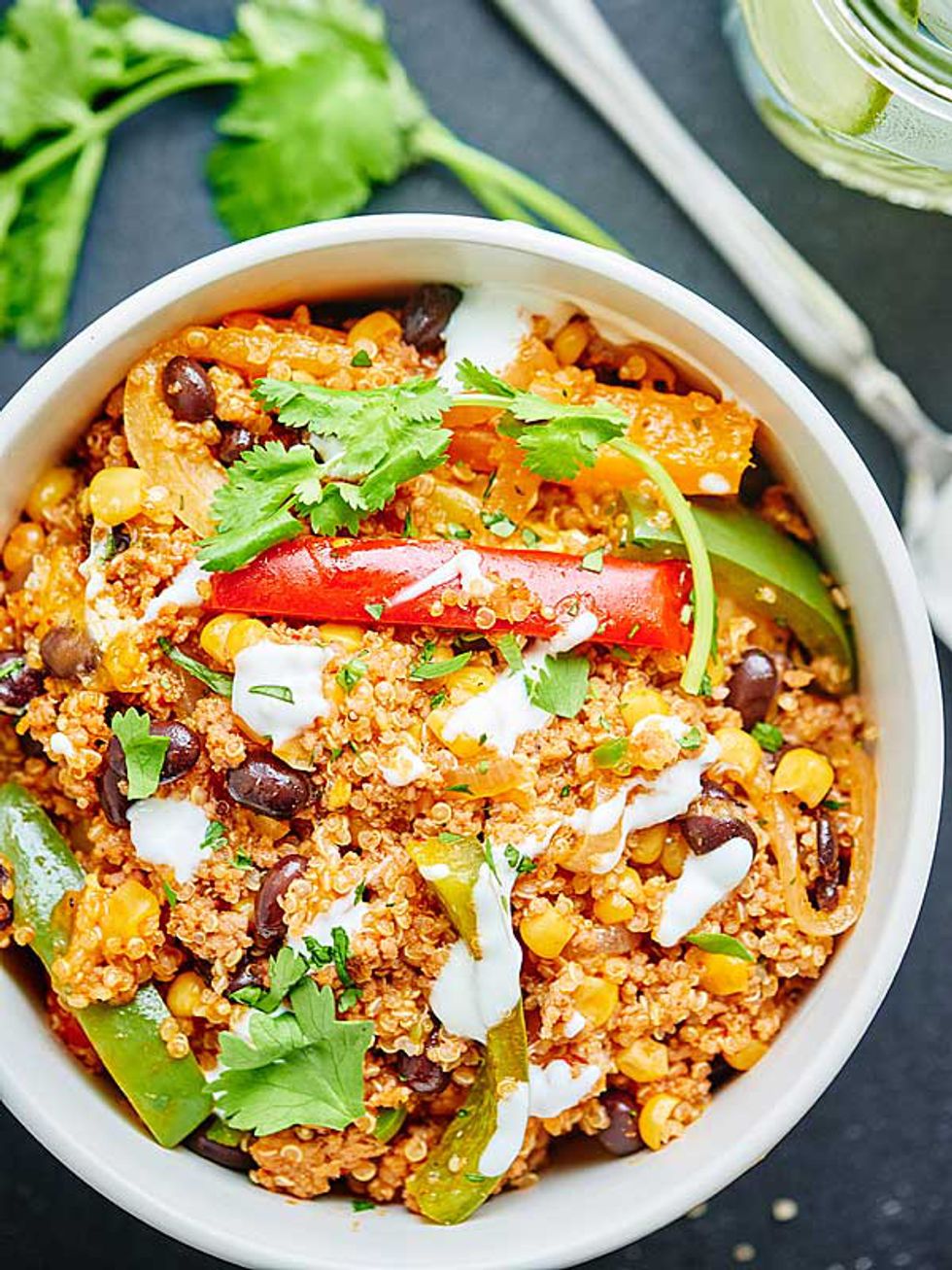 Healthy Mexican Casserole - full of good for you ingredients like ground turkey, quinoa, black beans & bell peppers! Click Here For recipe.