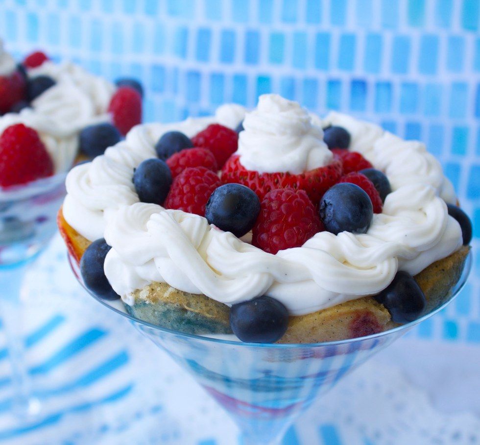 A beautiful patriotic berry trifle layered with vanilla mini cupcakes, coconut creme whip, and summer berries. Healthy, delicious, and easy to make! Read more here