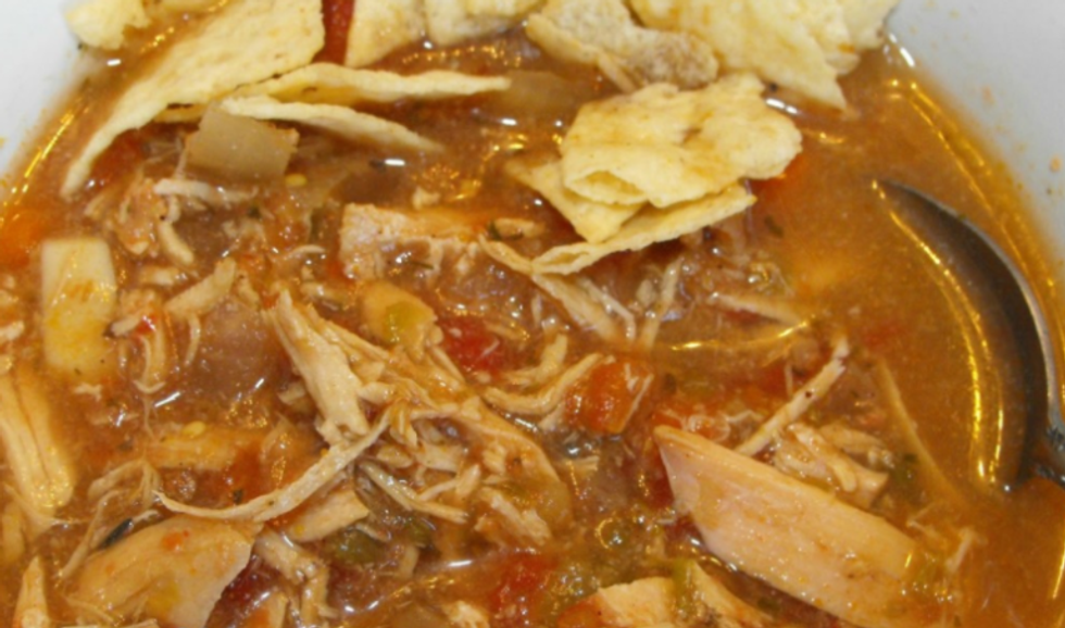 "This Mexican soup is so much fun to "dress up" after making it- sprinkle it with some cheese, serve it with corn chips or tortillas, add a little sliced radish or lime juice for a bit of extra pizazz- you can add whatever sounds good to you!"