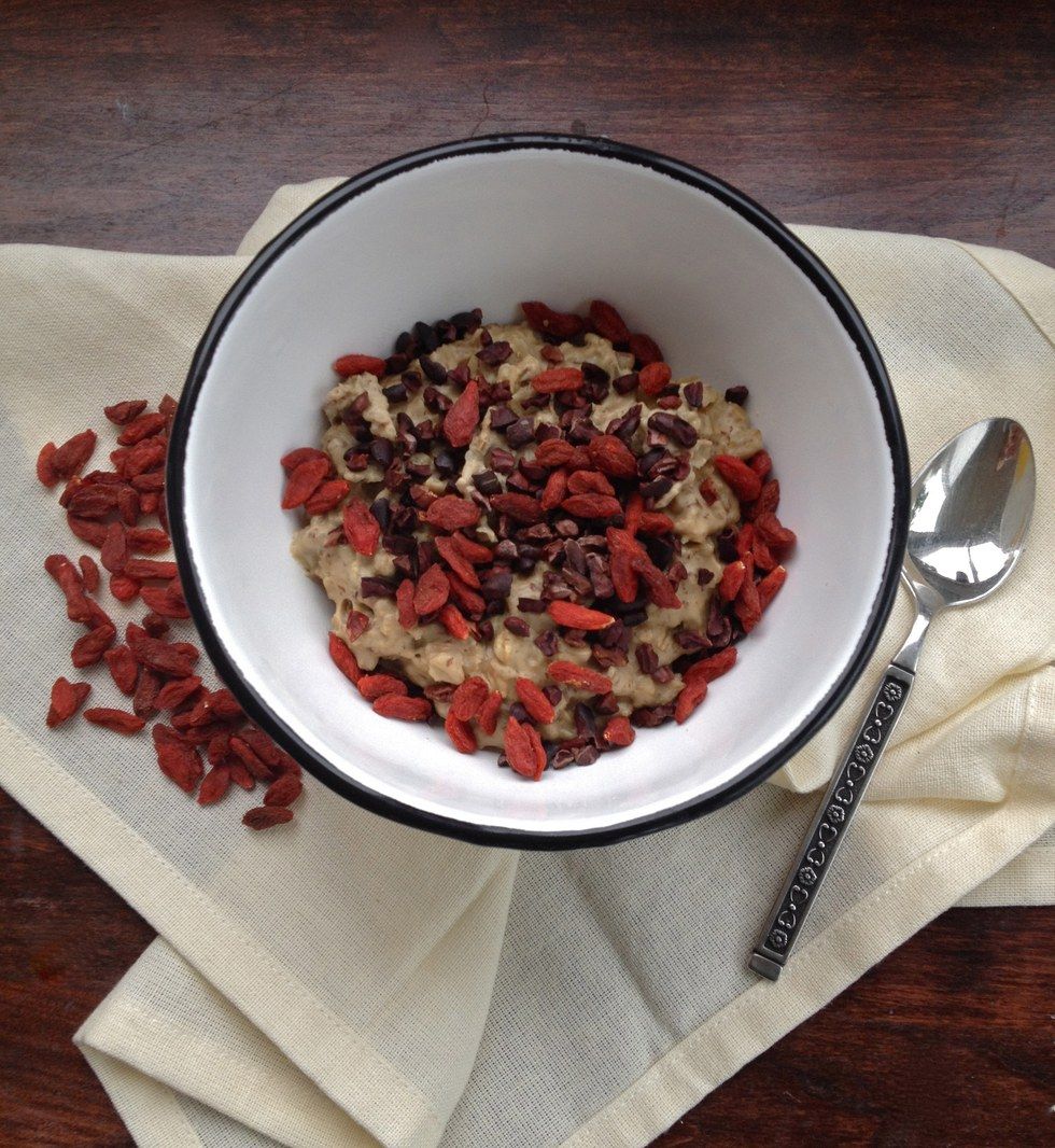 Oatmeal is a versatile food which packs plenty of carbs and fiber and can easily be topped with a high-protein ingredient like almond butter or a dash of protein powder. This is an extra good recipe.
