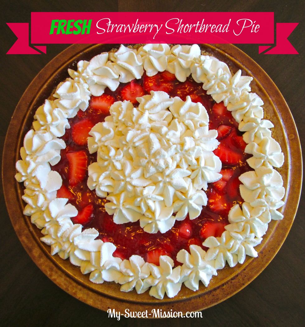 Fresh Strawberry Shortbread Pie has a buttery shortbread crust with sliced strawberries and a beautiful sweet whipped cream design. It's an extra special dessert for any occasion! Get recipe.
