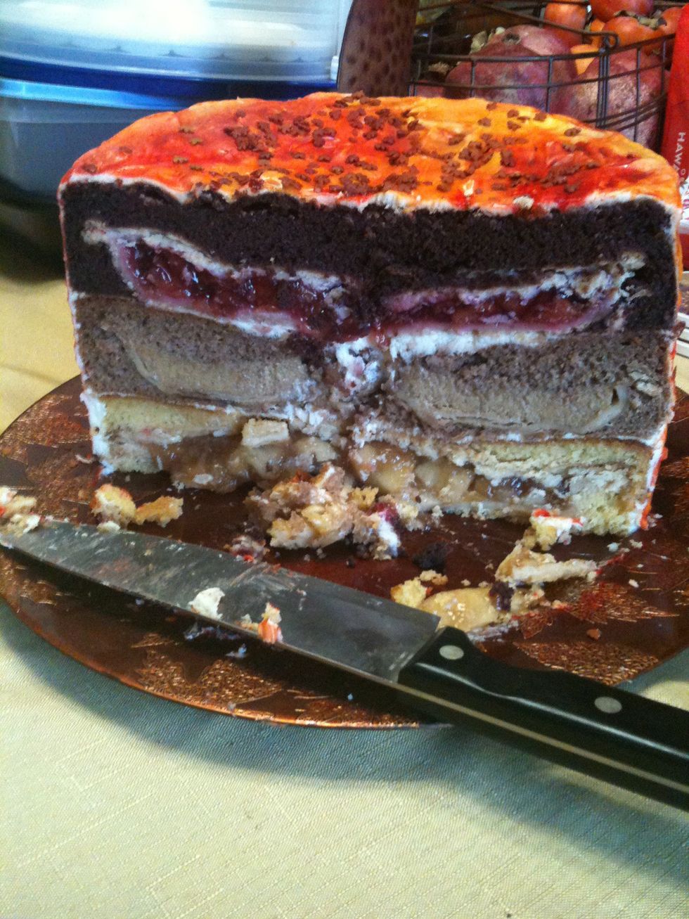 That's right a cherry, pumpkin and apple pie in three different cakes. Serve it a la mode and see how many go into a sugar coma! Recipe