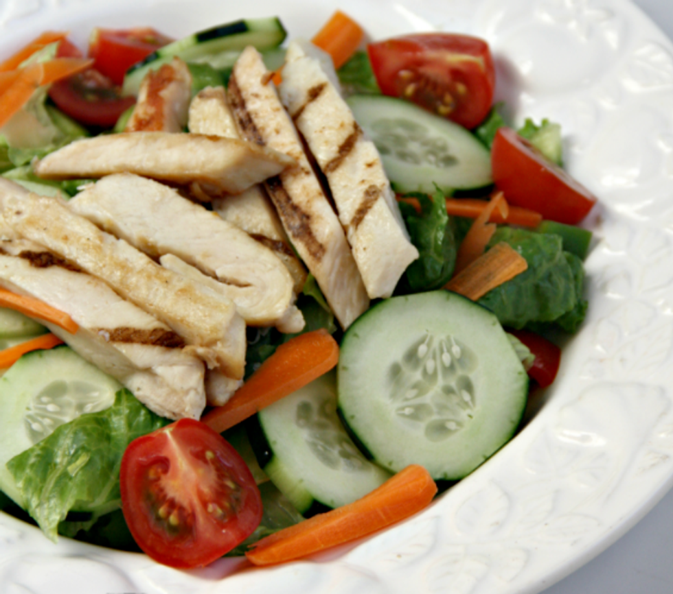 Try getting your fill of chicken and veggies in a wrap or a salad. Here are two great options: