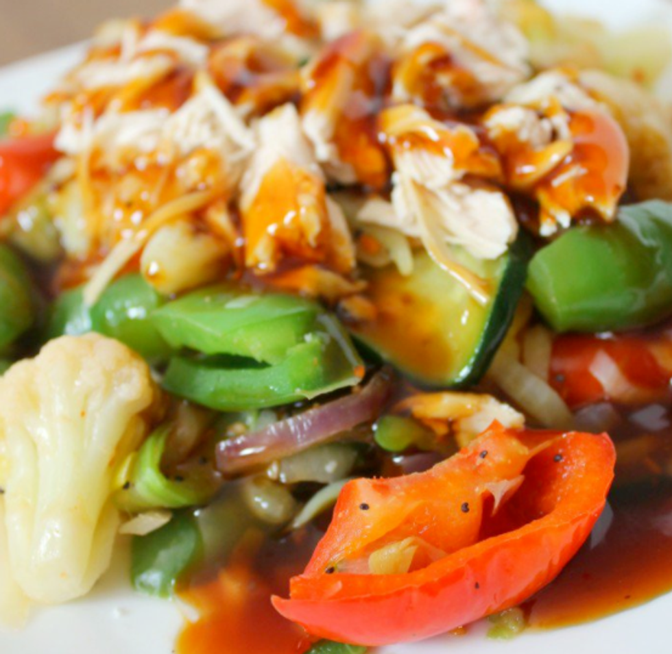7. Vegetable stir-fry with chicken, shrimp, edamame or tofu
