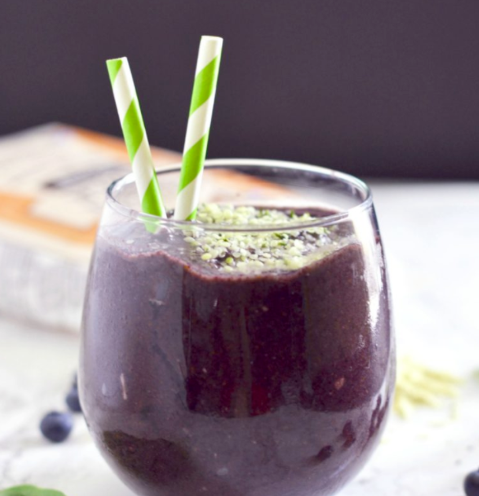 9. Smoothie made with avocado, berries, and protein powder