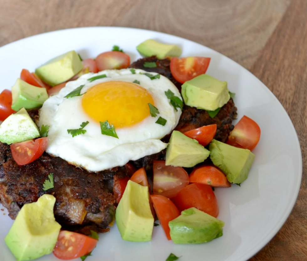 Last, but not least, finish up your morning workout with a healthy mix of eggs, beans, and peppers.