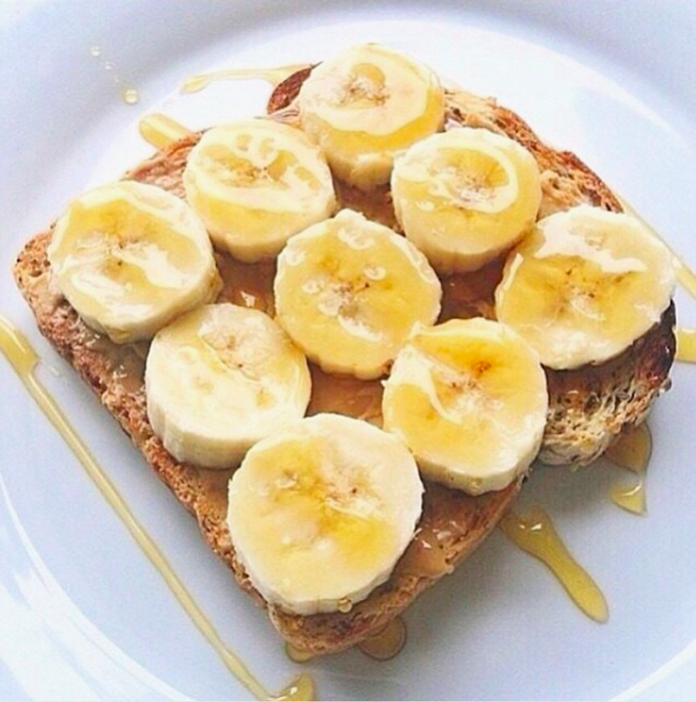 Start with the whole wheat bread, choose your peanut butter, and add those bananas. If you're feeling ambitious, drizzle some honey on top. Here you get simple and complex carbs, protein, and some potassium.